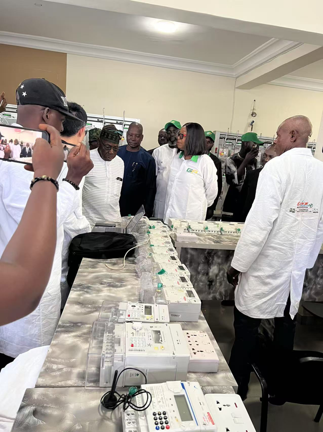 在視察過程中,KAYZ尼方負責人PrinceKal對奧巴桑喬一行的到來表示熱烈歡迎,并詳細匯報了企業發展歷程與經營現狀。Prince重點介紹,KAYZ作為尼日利亞本土智能電表和水表生產領域的佼佼者,不僅是少數具備本土生產能力的企業之一,更是該國唯一一家為客戶提供智能電表融資支持的本地電表企業。自2024年引入中國戰略投資方大禹電氣后,KAYZ實現了資金與技術實力的雙重躍升。截至2025年5月,KAYZ生產的智能電表在尼日利亞累計中標供貨量已接近40萬塊。